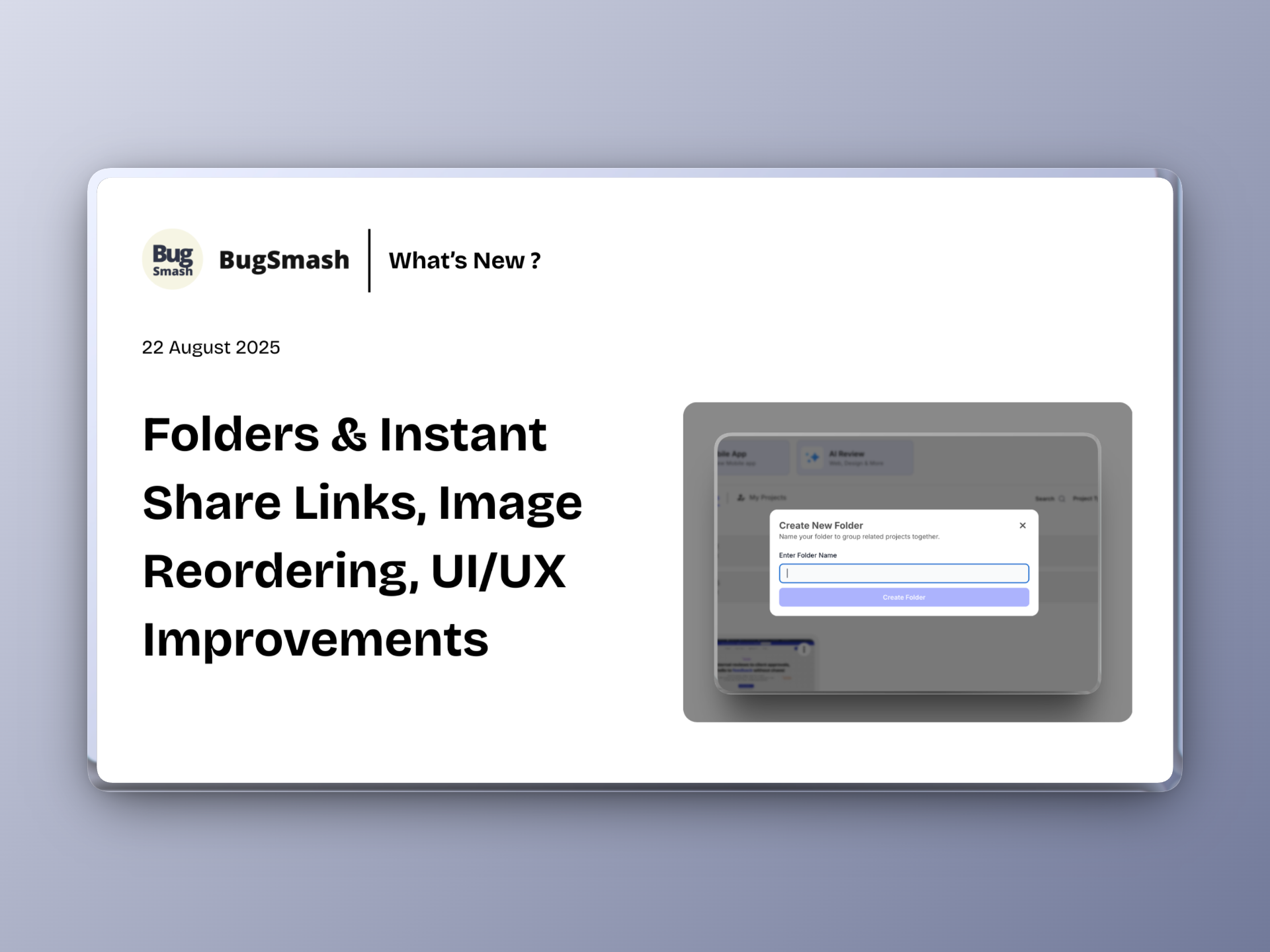Folders & Instant Share Links, Image Reordering, UI/UX Improvements