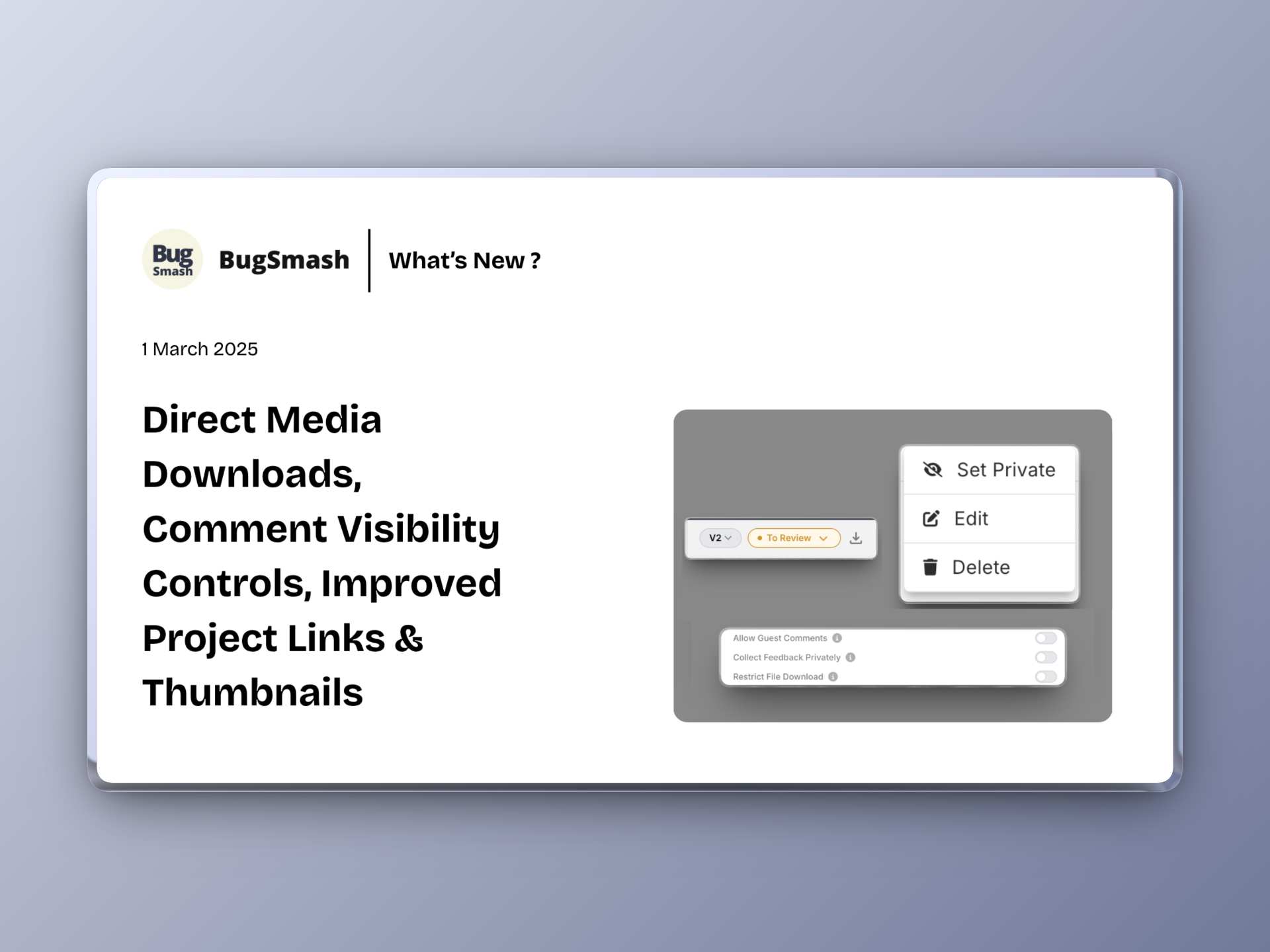 Direct Media Downloads, Comment Visibility Controls, Improved Project Links & Thumbnails